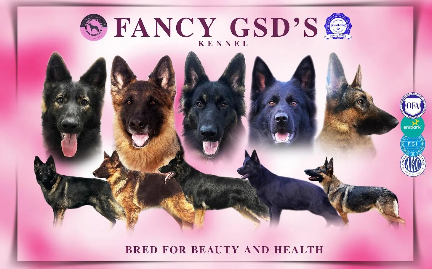 Our promise at Fancy GSD’s is to always do our absolute best and continue our education whether that be about German shepherds, genetics, sports, titles, health and overall growth within our program. We want to make sure we are keeping up to date with any new testing, any new issues or any new studies with German Shepherds.