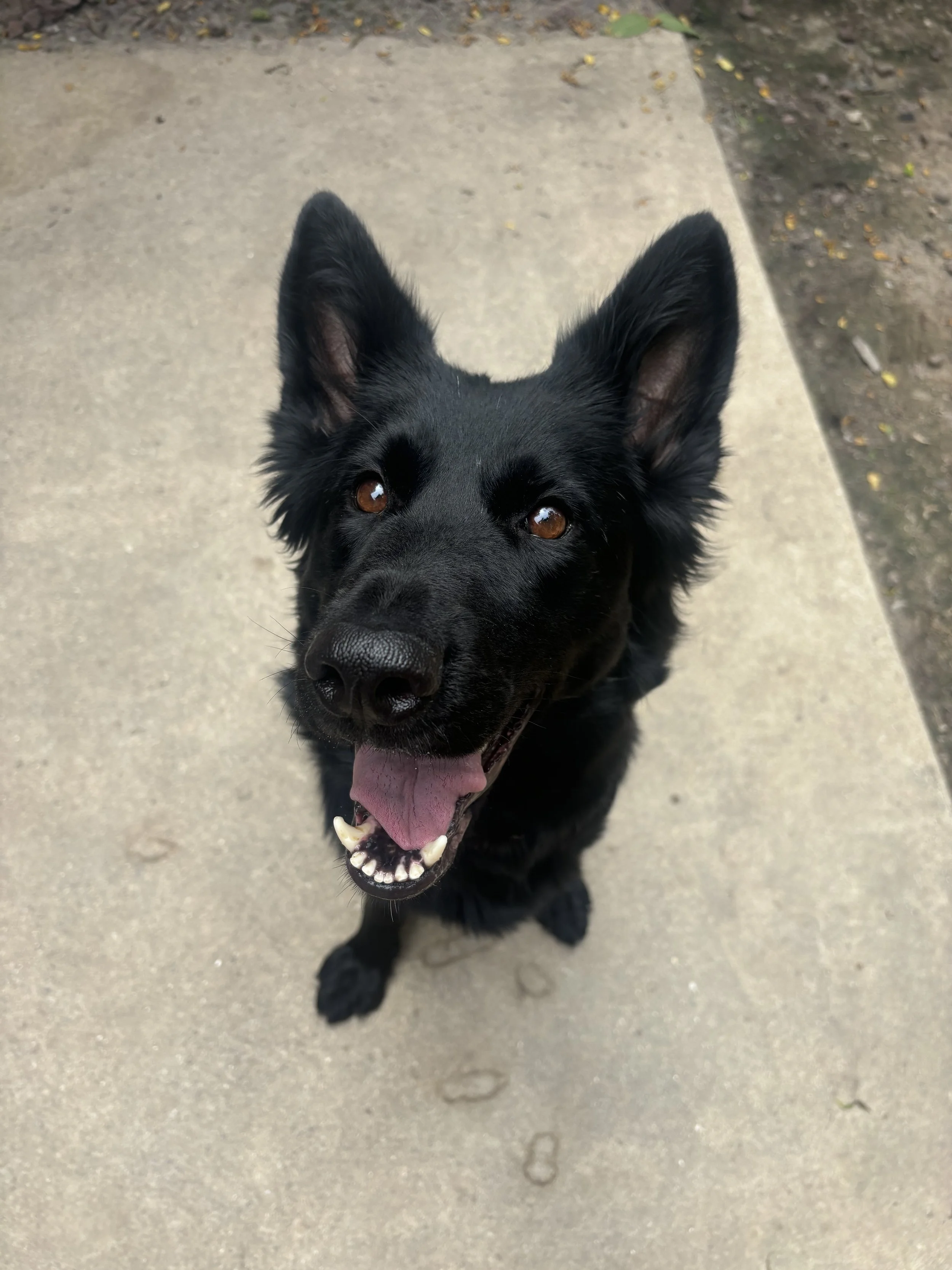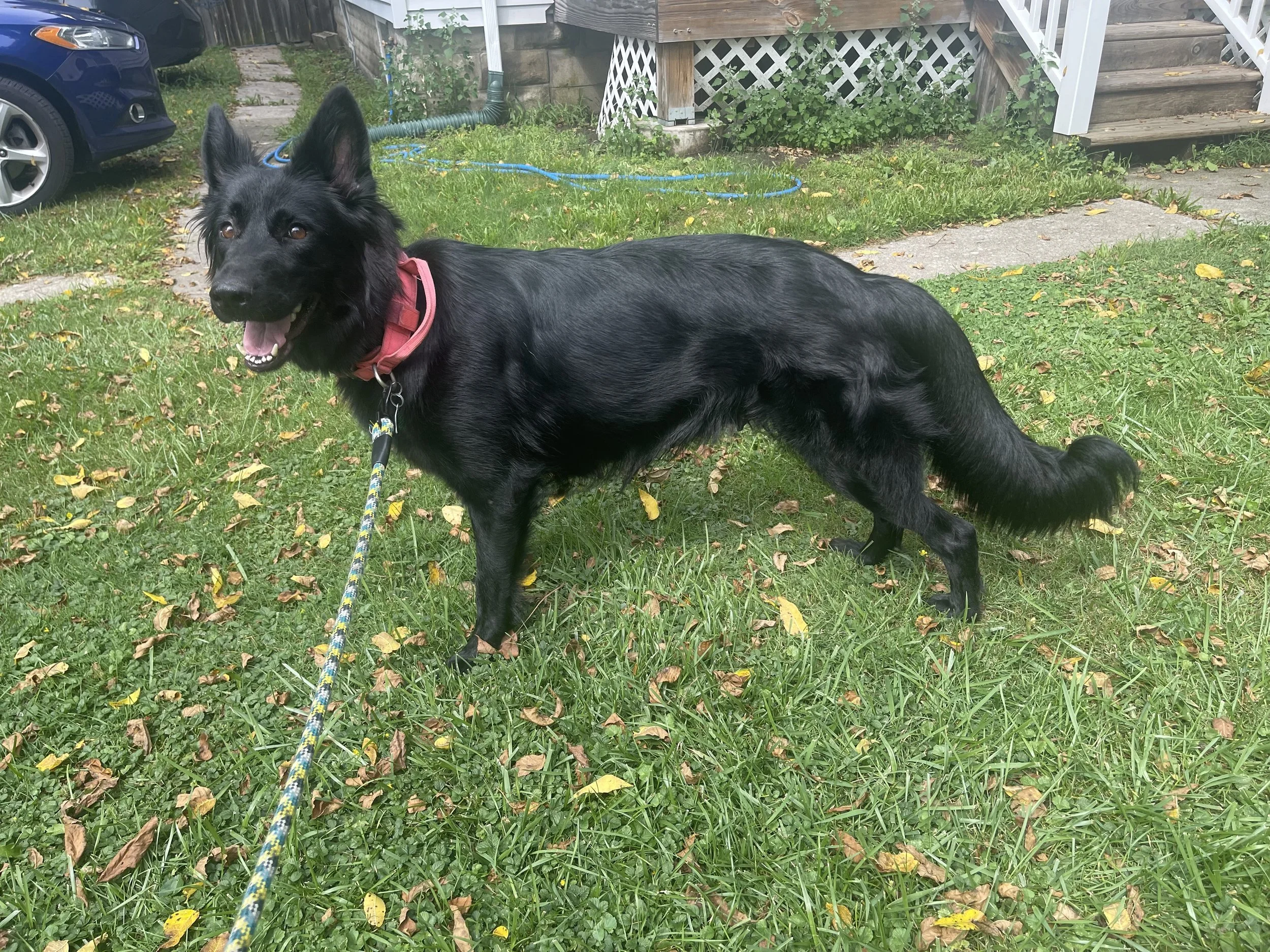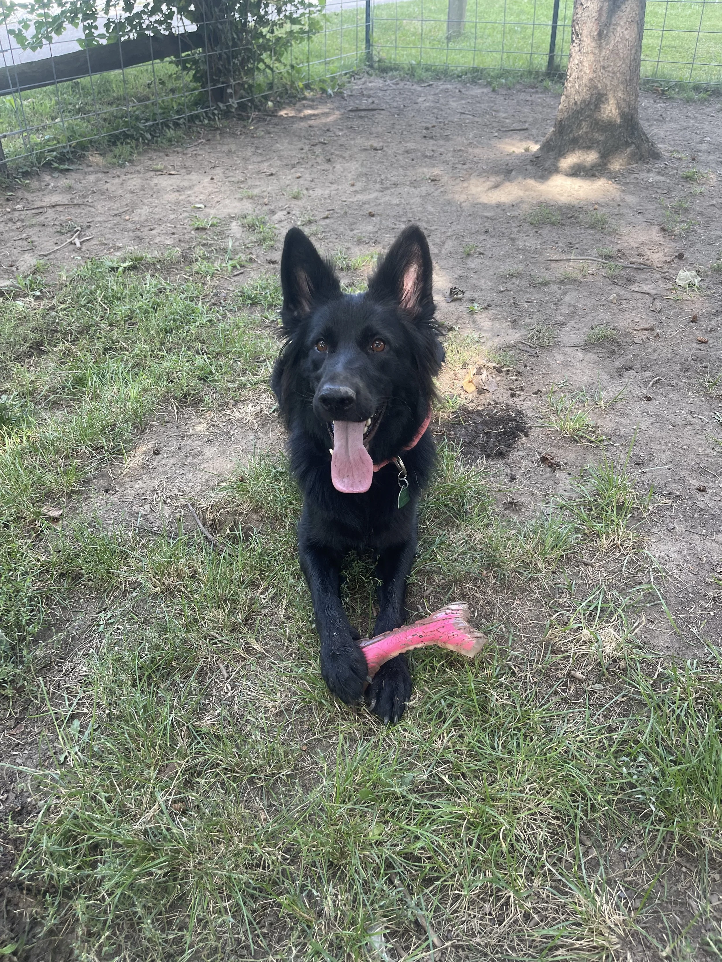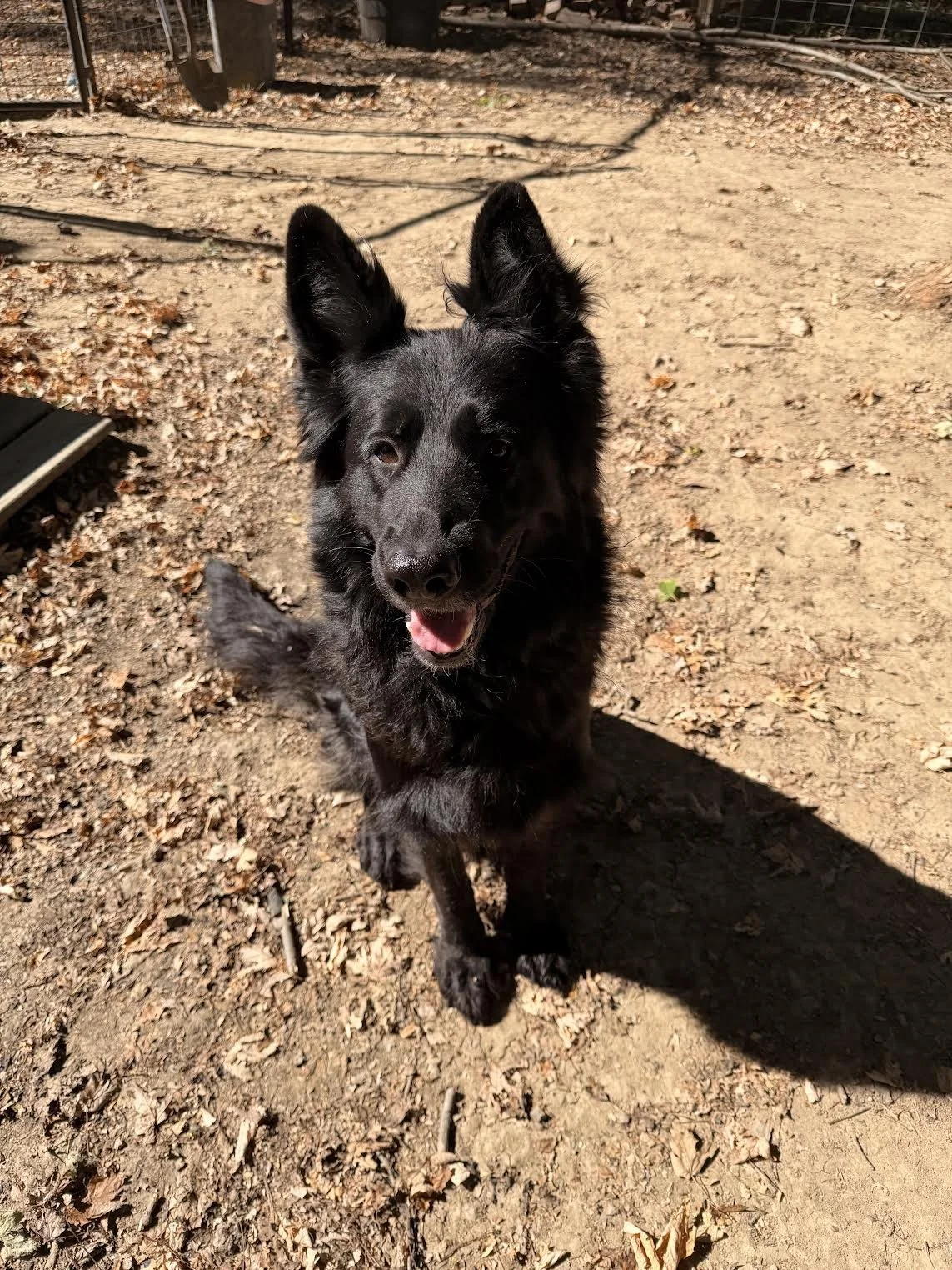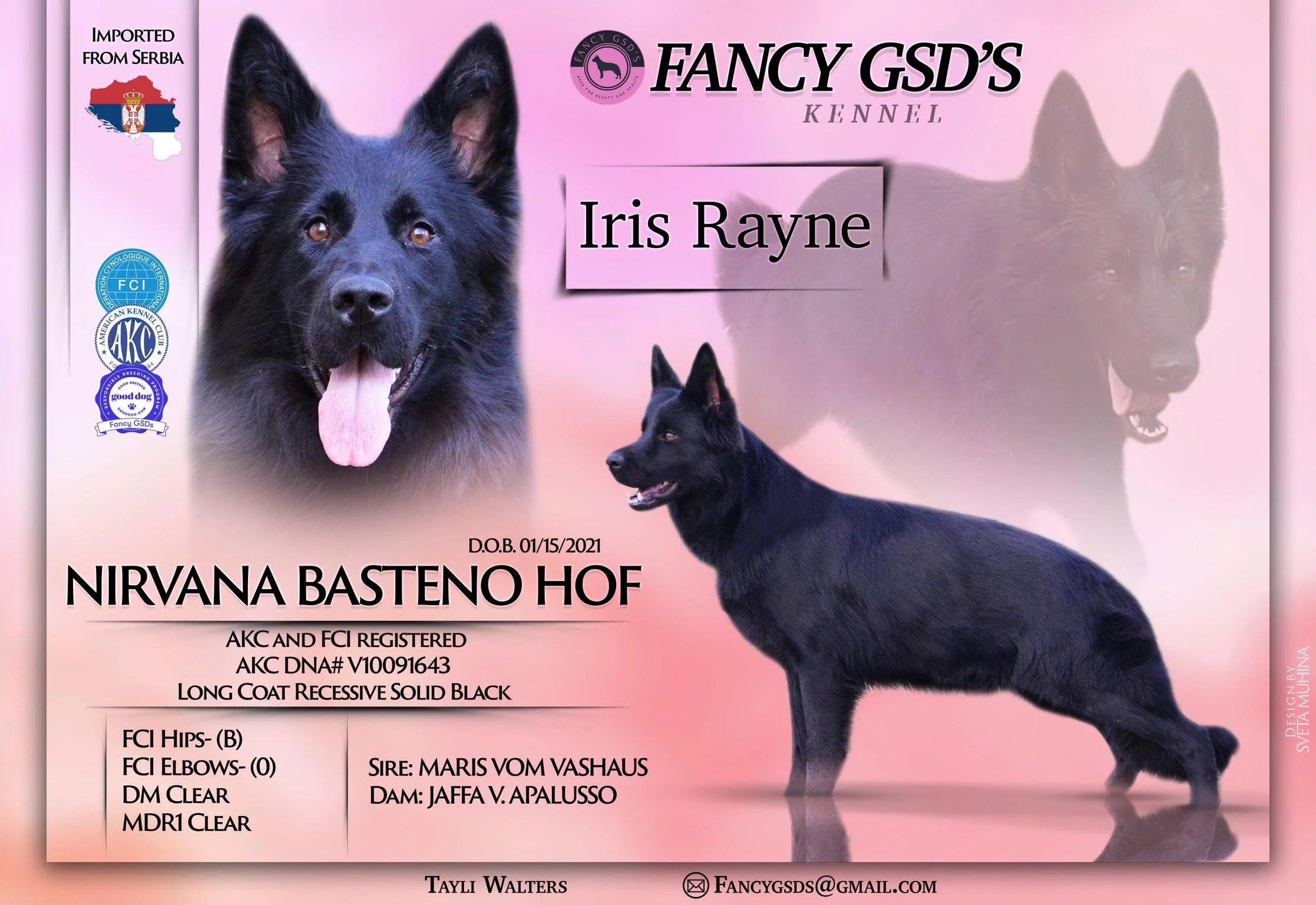 Iris is a long coat recessive solid black imported from Serbia. She is such a sweet heart and all around awesome girl. She weighs 65 pounds. She is dual registered.