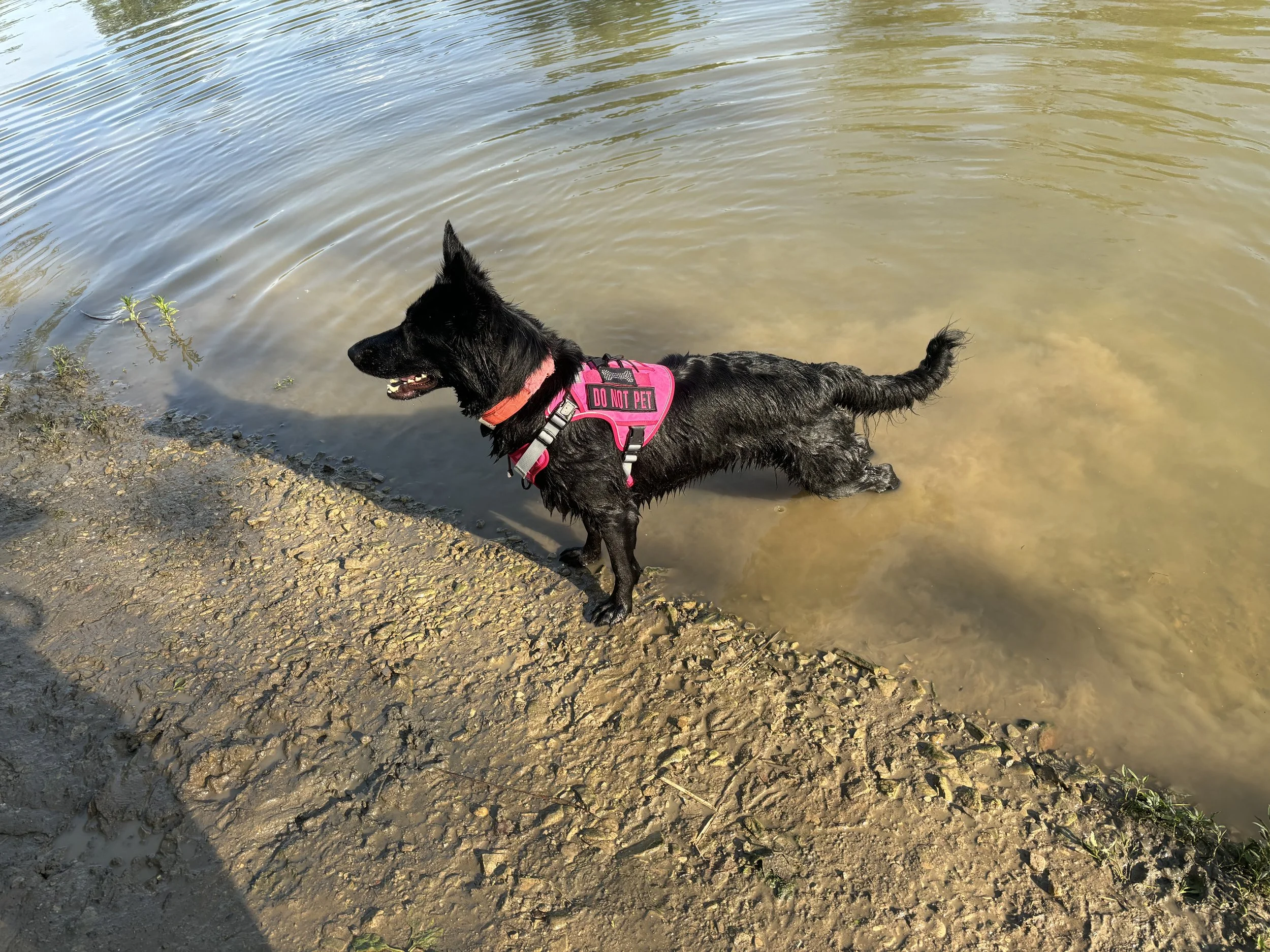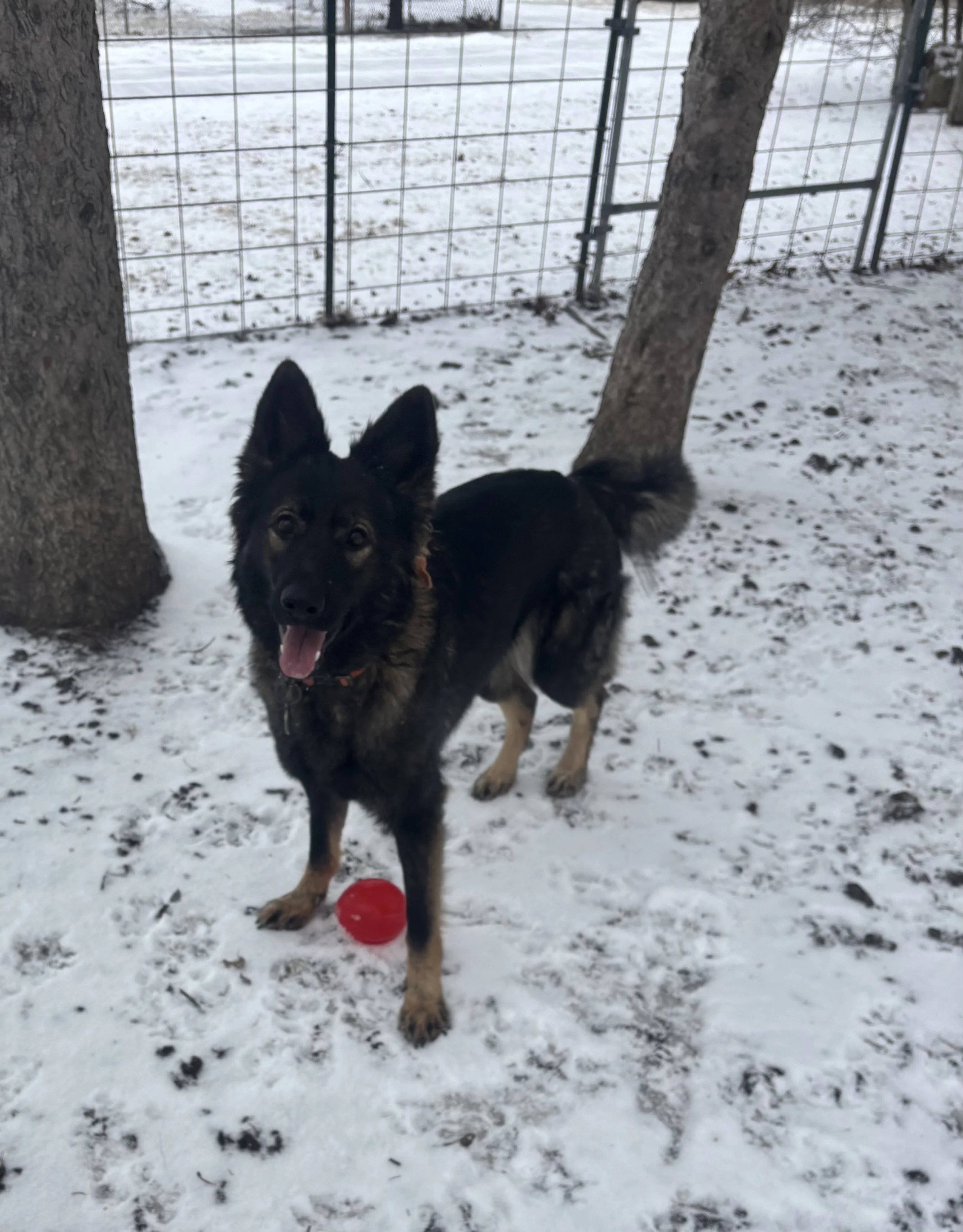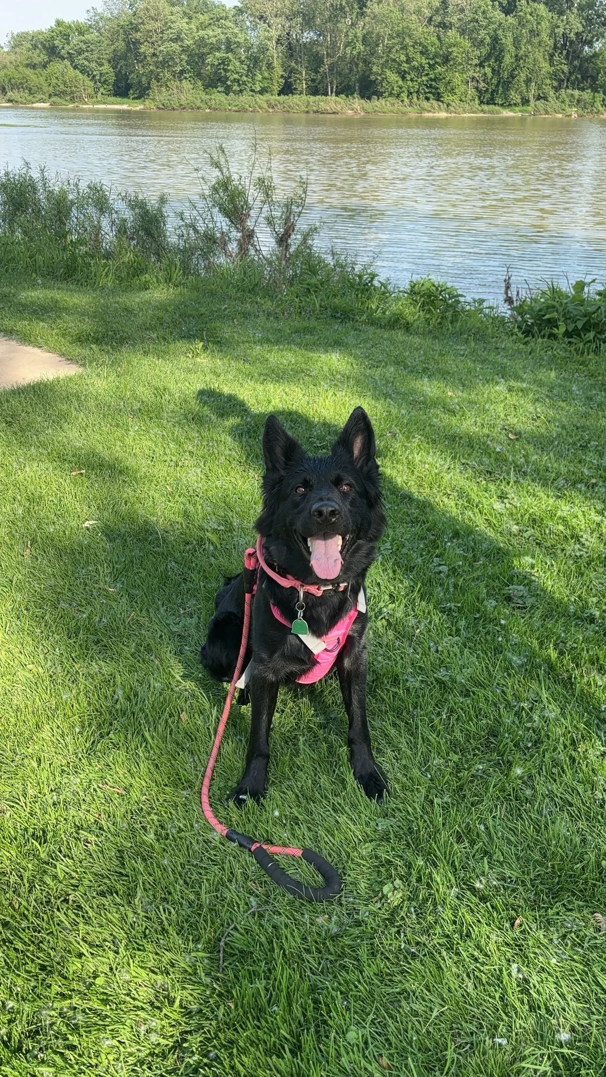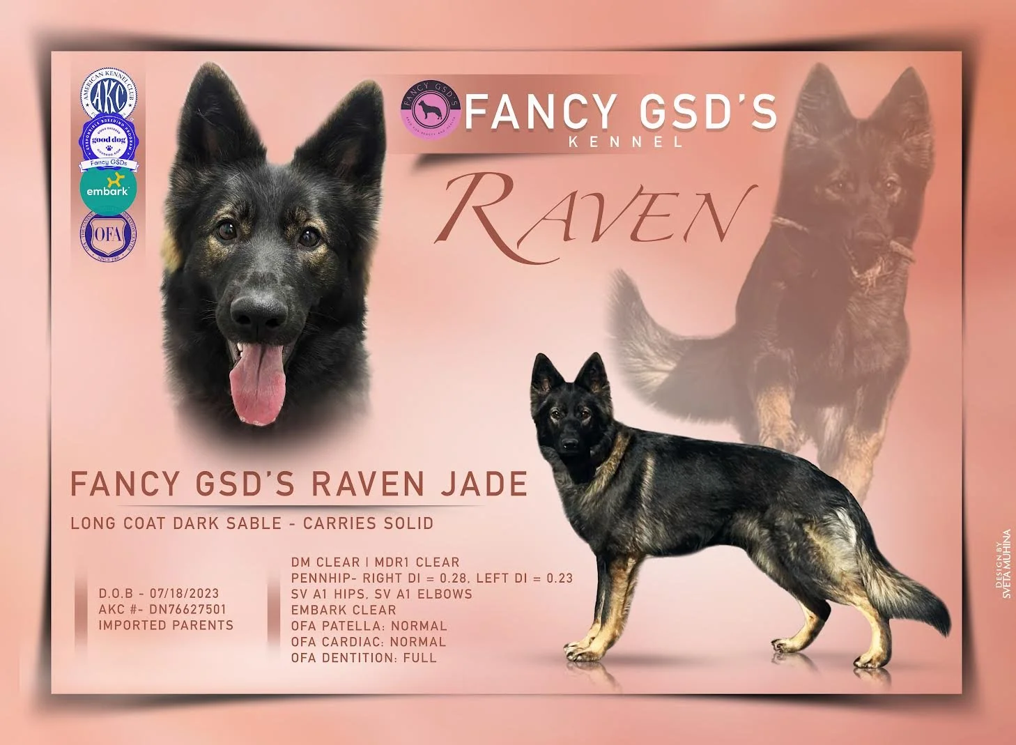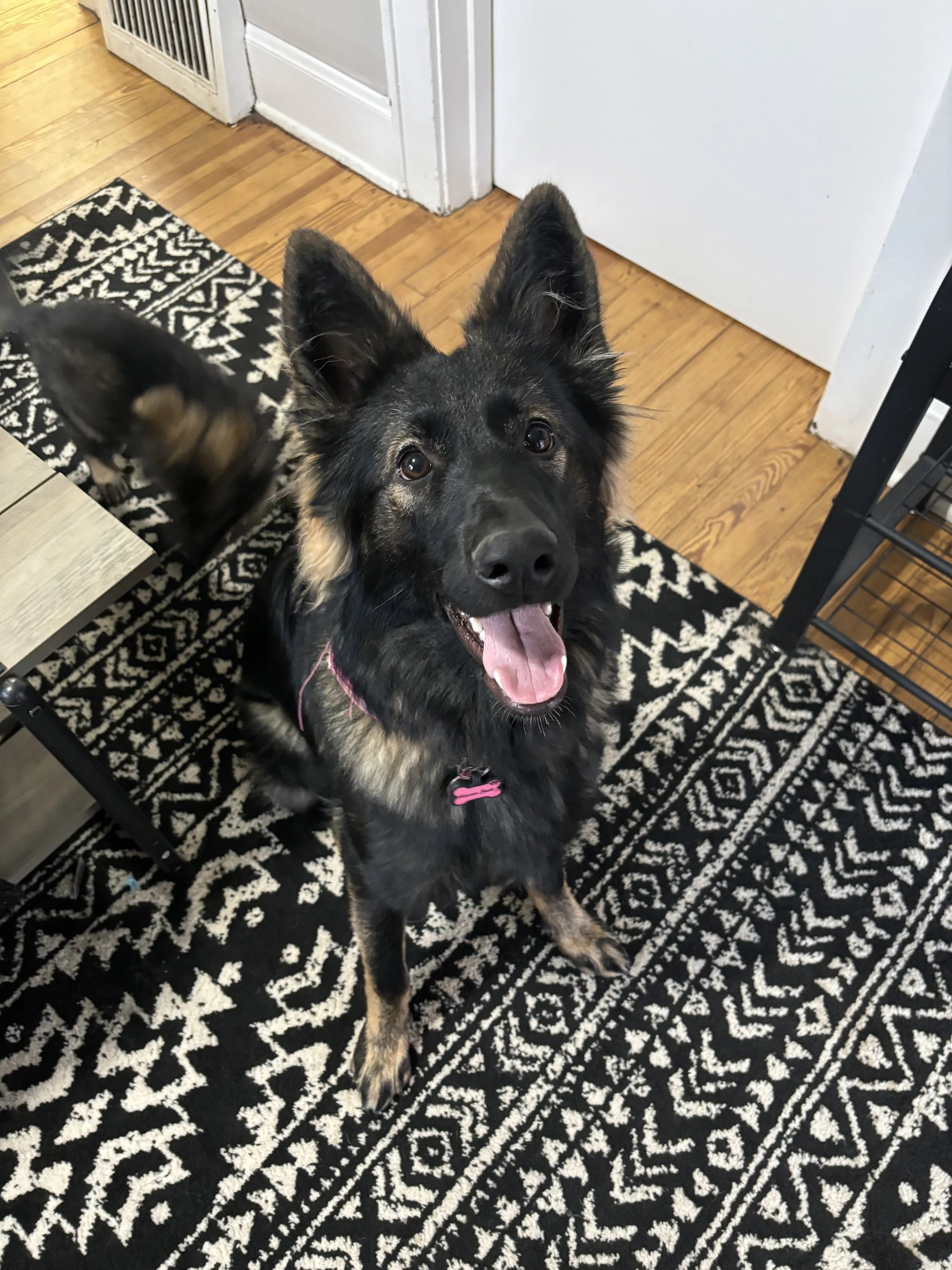 Iris is a long coat recessive solid black imported from Serbia. She is such a sweet heart and all around awesome girl. She weighs 65 pounds. She is dual registered.