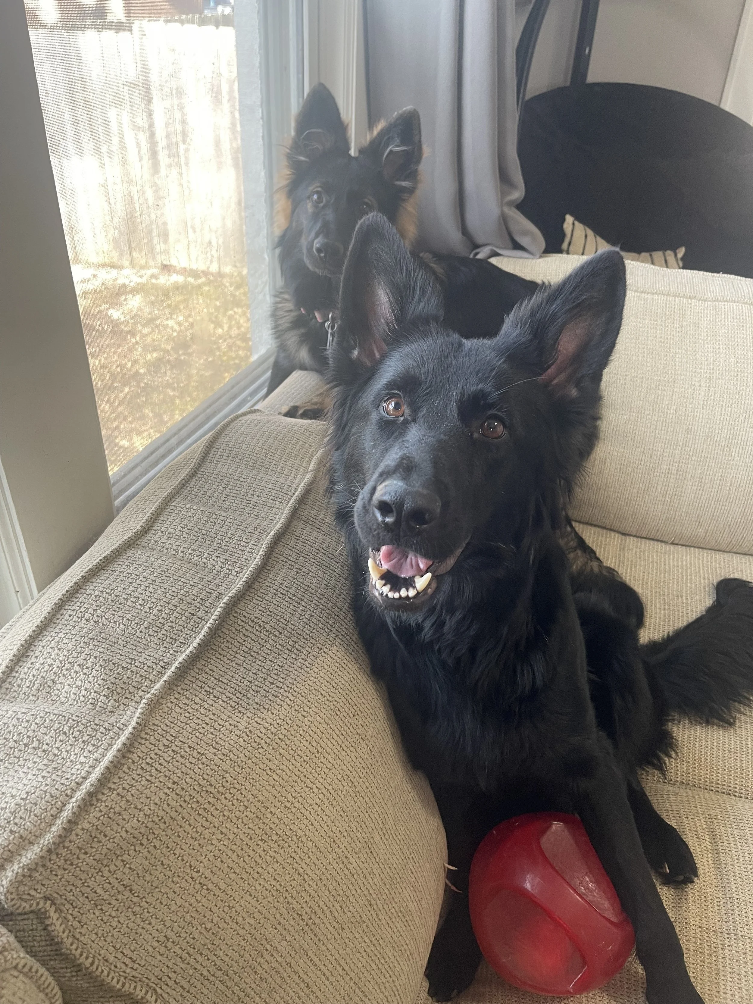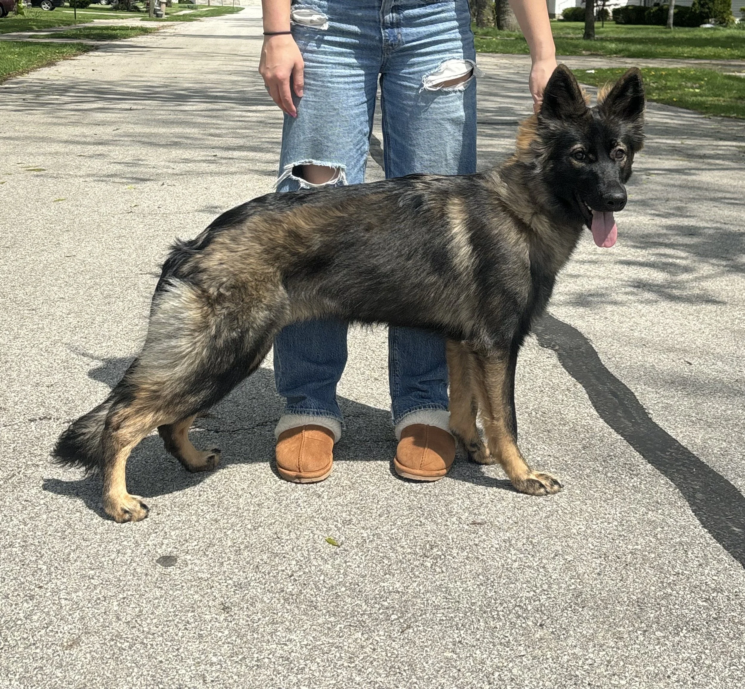Ocean is a long coat black and red that carries Solid. Her Sire is imported from Russia and her Dam is imported from North Macedonia. She is such a sweet girl with an amazing temperament. She is such a goofy girl and loves to play with Apollo.